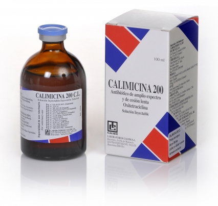 Calimicina Antibiótico de amplio espectro a base de Oxitetraciclina. Indicado para el tratamiento de infecciones causadas por microorganismos sensibles a la Oxitetraciclina en ganado, bovino, ovino, caprino y porcino. Solución inyectable. Línea Terapéutica Antibióticos